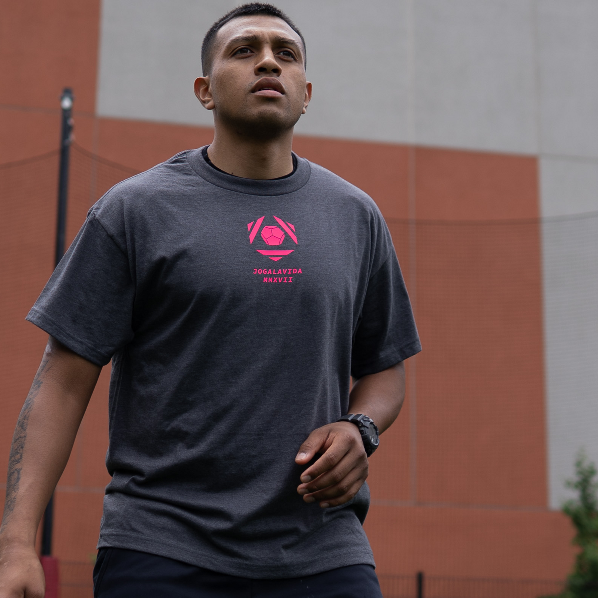 This limited JLV design celebrates the global language of the beautiful game. Featuring bold typography in multiple languages wrapped around a central football emblem, this tee honors every pitch, every chant, every nation that plays.